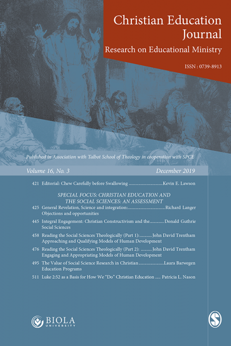 The purpose of the Christian Education Journal is to strengthen the conception and practice of Christian education in church and parachurch settings through:• Encouraging reflection on the foundations of Christian education and implications for ministry practice• Exploring the integration and application of social science theory and research to educational ministry concerns• Fostering improved teaching in the field of Christian education at colleges and seminaries, equipping people for leadership in this field• Promoting the assessment of our changing cultural context and of contemporary educational ministry needs, models, and trends• Providing reviews of new books in the field of Christian education and other related disciplines that impact educational ministry