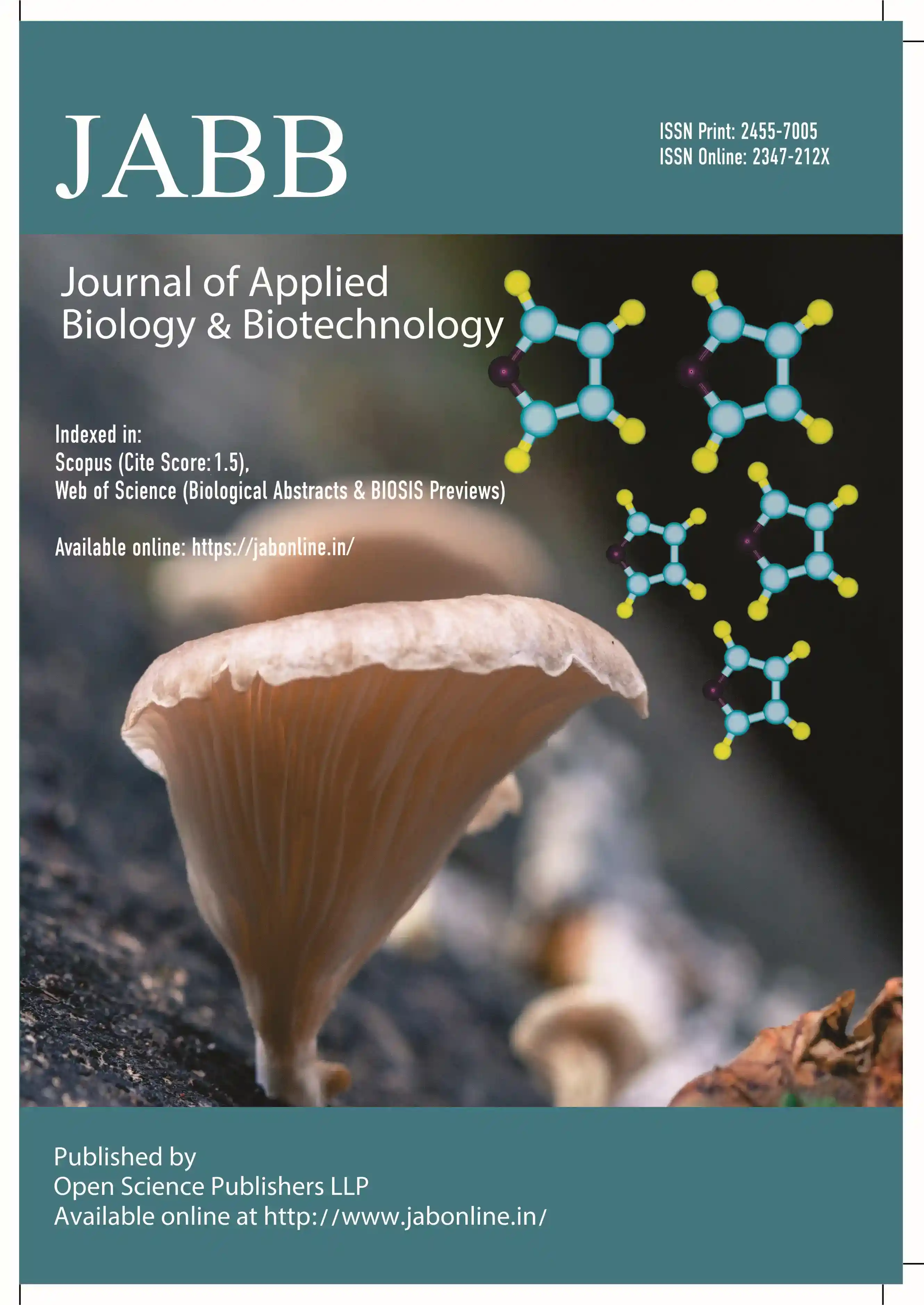 Journal of Applied Biology and Biotechnology is a peer-reviewed, open-access journal, dedicated to the publication of original research, review articles, and short communications on applied research in the following subject area; Agricultural and Biological Sciences, Agronomy and Crop Science Plant Sciences, Plant breeding, and Medicinal Plants General Biochemistry, Genetics, and Molecular Biology Microbiology & Food Science Biotechnology & Bioinformatics JABB is indexed in Scopus, Web of Science (Biological Abstracts & BIOSIS Previews), Embase/Excerpta Medica and many other international databases.