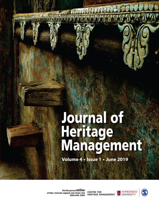 The Journal of Heritage Management is a joint publication of the Centre for Heritage Management, Ahmedabad University and SAGE. The Centre has launched an innovative two year Master’s degree programme in Heritage Management which brings together discourses of Heritage and management, and aims to expand the current practices of heritage conservation to that of heritage management. It strives to bring about inclusion of heritage in all relevant policies and decisions of the country and make people aware about the imperative need to preserve the cultural assets of the nation. The Centre aims to achieve its vision by offering quality academic and executive programmes to create motivated professionals; through research, documentation and publications; by organizing national and international seminars, conferences and symposia to expand and explore successful heritage experiences and practices from across the world; offer consultancy to heritage stakeholders and provide inputs for policy making.To this end, the Journal of Heritage Management attempts to explore new territory by promoting interdisciplinary research into the relevance and meaning of Heritage Management and addresses the challenge of applying traditional management theories and techniques to the field of heritage preservation. It is global in its outlook while being rooted to the issues posed by the common cultural heritage of India/South Asia and Southeast Asia.The Editorial Board and the Advisory Board of the Journal is constituted of experts, scholars and practitioners from all over the world and reflects the multicultural and multi disciplinary approach of the Journal to this emerging field. The Journal aims at giving equal importance to both the theory of heritage as well as to the practise of its conservation.