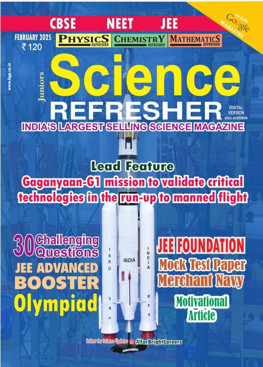 Junior Science Refresher magazine is engg. , jee main , jee-advanced , cbse , kvpy , olympiad , ntse , bitsat , merchant navy exclusive , etc special 30 challenging questions use for all above exams monthly special material on olypiad