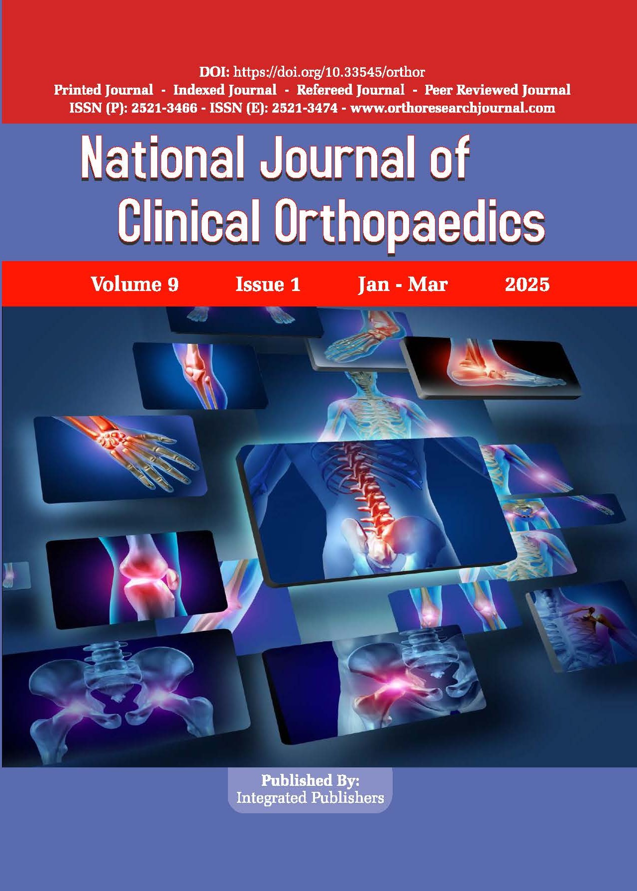 National Journal of Clinical Orthopaedics is peer-reviewed and refereed journal publishing high quality papers on all aspects of orthopaedic studies, which includes Arthroplasty, Arthroscopy, Paediatric Orthopaedics, Trauma and Spine and an miscellaneous topics. The journal is indexed in Google Scholar, Crossref, Index Copernicus and ResearchBib. National Journal of Clinical Orthopaedics follows recommendations of the International Committee of Medical Journal Editors (ICMJE), the World Association of Medical Editors (WAME), the Council of Science Editors (CSE), the European Association of Science Editors (EASE), and the Committee on Publication Ethics (COPE). We invite you all to contribute to National Journal of Clinical Orthopaedics (NJCO). Online submission of the manuscript is strongly recommended. A manuscript number will be mailed to the corresponding author within one week or earlier. Prospective authors can submit their manuscripts at clinicalorthojournal@gmail.com. Read Instructions to Author for more details. All manuscripts are subjected to peer review process (which are not previously published and are not under consideration for publication by another journal) would be published without any delay in a subsequent issue after acceptance.