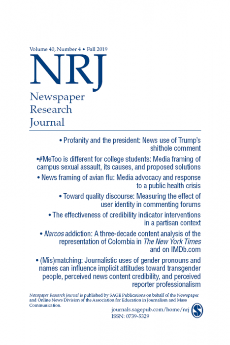 Newspaper Research Journal (NRJ) is a refereed journal published quarterly that reaches thousands of journalism students, scholars, and media professionals in the United States and internationally.Founded in 1979, NRJ answers questions about all aspects of US and foreign newspapers: their content, their staffs, their management (including advertising, circulation, and production) and economics, their technology, their design and layout, their relationships with their communities and democracy, their relationships with journalism educators, journalism ethics, and more. All research methodologies and all relevant theories are welcome.NRJ is the official journal of the Newspaper and Online News Division (NOND) of the Association for Education in Journalism and Mass Communication (AEJMC).