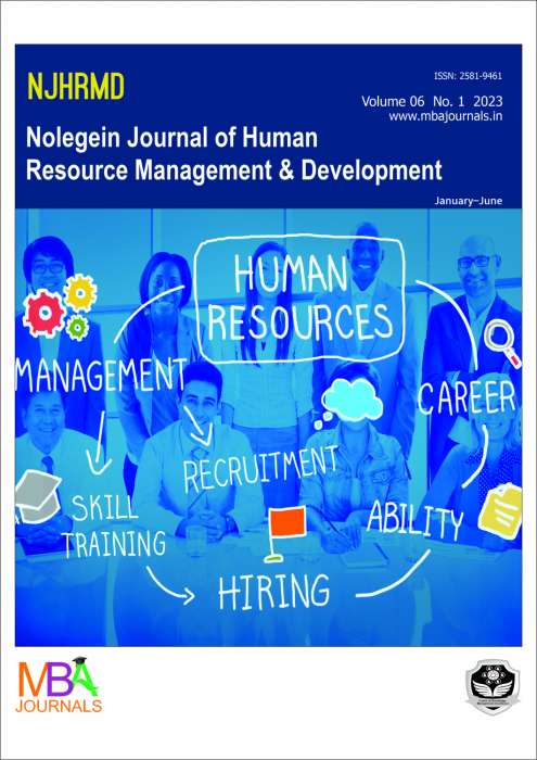Nolegein - Journal of Human Resource Management & Development is focused towards the rapid publication in the following areas of Education, Training and Development Practices Human Resource Maintenance and Retention Compensation Practices Business Leadership Consulting and Diversity Employee Relations Ethics & Sustainability Global HR Organizational & Employee Development Staffing Management Technical impact on HRM Workforce Diversity management HR Outsourcing Employee Engagement & Employee Communication Training and development Work life balance Employee Satisfaction Survey Sections covered by this journal are review papers, research papers, interviews, news, companies/ institutions write-ups, short popular articles and case studies.