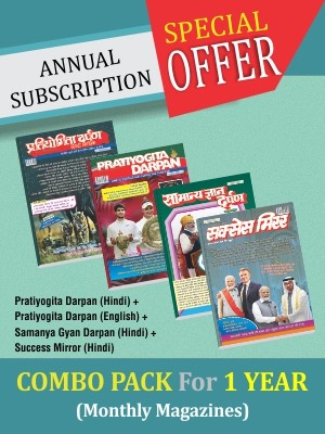 Get upto a maximum of 25% discount when you order for PRATIYOGITA DARPAN HINDI + PRATIYOGITA DARPAN ENGLISH + SAMANYA GYAN DARPAN HINDI + SUCCESS MIRROR HINDI COMBO PACK FOR ONE YEAR Magazine. No coupon codes are required, simply choose and place your order to avail the discount offer.