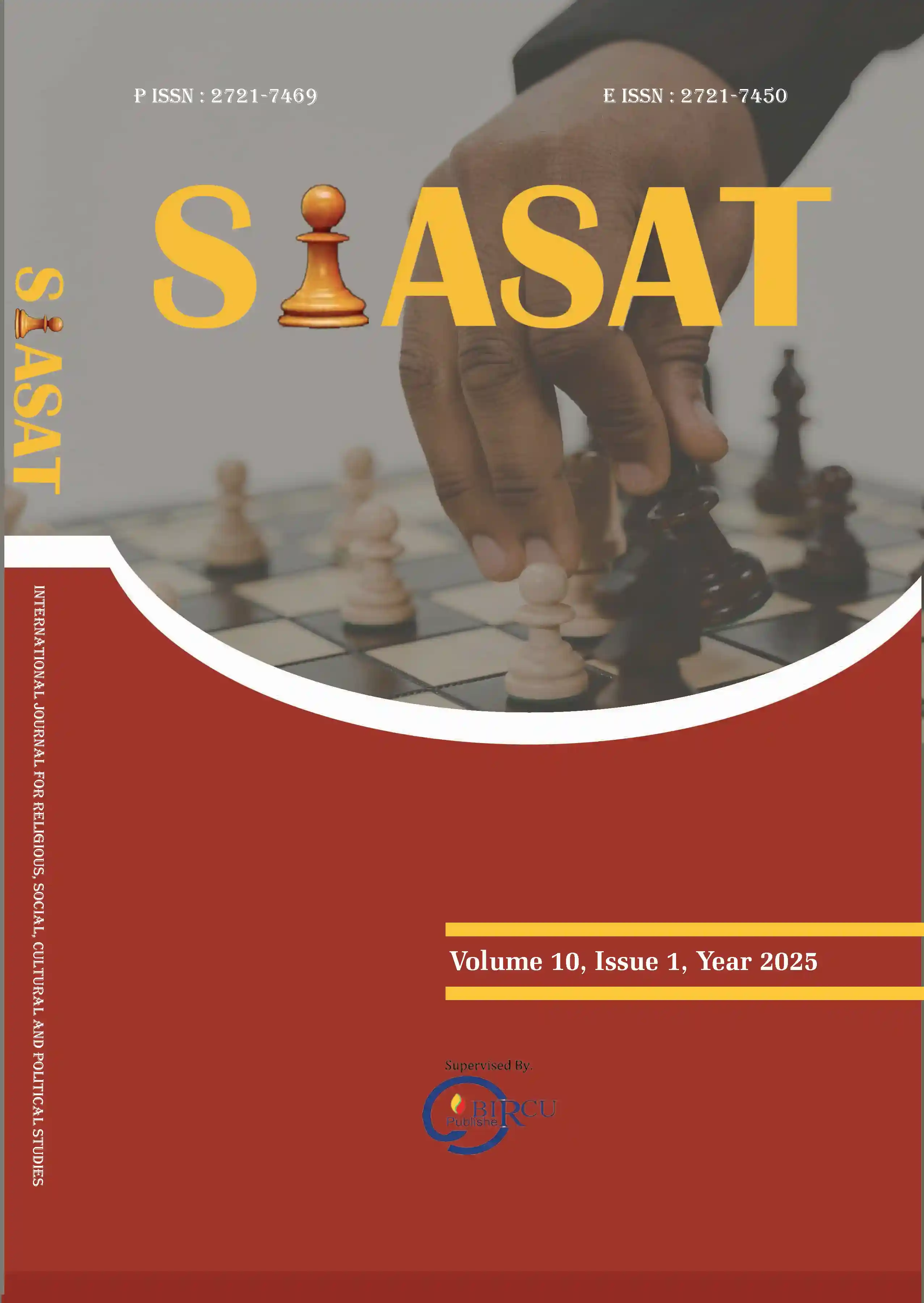 SIASAT Journal is an international journal for religious, social, cultural and political studies using a peer-reviewed process published in January, April, July and October by BIRCU Publisher in association with The Indonesian Islamic Studies and International Relations Association (Insiera) , Himpunan Indonesia untuk Pengembangan Ilmu-Ilmu Sosial (HIPIIS- Indonesian Association for the Development of Social Sciences) and Asosiasi Dosen Ilmu-ilmu Adab (ADIA-Association of Humanities Lectures). SIASAT Journal of Religion, Social, Cultural and Political Sciences welcomes articles in politics, global issues, culture, social and other related areas published both online and printed version.