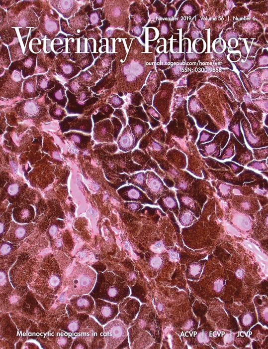 Veterinary Pathology is the premier international publication of basic and applied research involving domestic, laboratory, wildlife, marine and zoo animals, and poultry. Bridging the divide between natural and experimental diseases, the journal details the diagnostic investigations of natural and emerging diseases of animals; reports experimental studies enhancing understanding of the mechanisms of specific processes including cancer, infection, immunologic, metabolic and genetically mediated diseases; provides unique insights into animal models of human disease; and presents studies in identification and characterization of environmental (food, plant and chemical) and pharmaceutical hazards.Written for veterinary pathologists, veterinary diagnostic laboratory staff, toxicologic pathologists, comparative pathologists, medical pathology researchers, environmental scientists, and others involved in veterinary diagnosis and animal research across all animal species, each issue features original articles, in-depth reviews, brief communications and unique case reports. Veterinary Pathology is at the forefront of important issues including emerging disease trends, biothreat, genetic modification of animals, food, chemical and drug safety, environmental monitoring, and diagnostic technologies.The members of the distinguished editorial board are all internationally recognized in their specialty areas and have achieved awards and recognition attendant with their thought leader reputation.Among the important topics covered are: